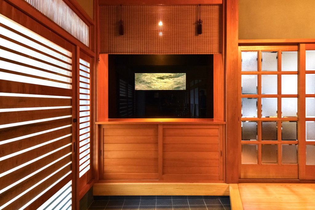 アートを感じる事ができたり、建物内から見える勝山の壮大な大自然や、和風庭園も
